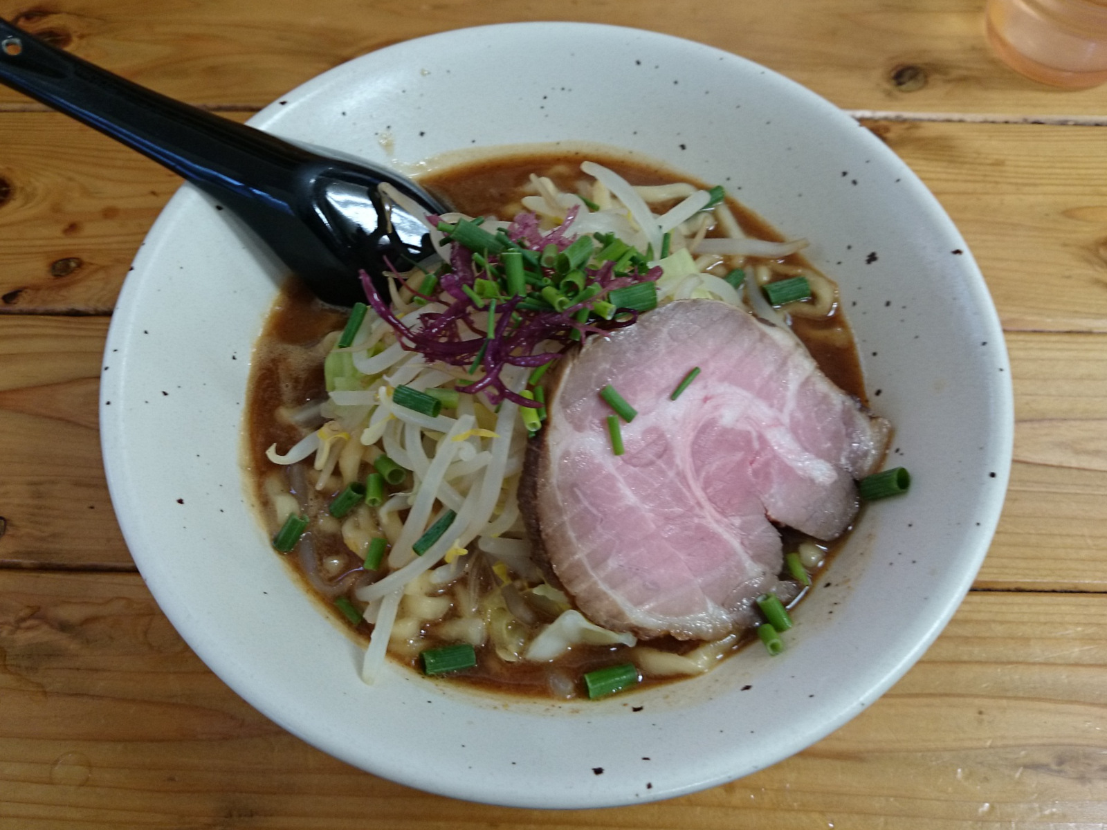 動物系と魚介出汁を合わせた濃厚なスープがベースとなっています。特徴的なのは赤味噌ですかね。ただ赤味噌の風味は感じられるものの塩分は控えめ。味噌ダレ自体が少ないのか味噌ラーメンなのに出汁が主張するバランスで、見た目ほどパンチのあるスープではないですね。麺はぷりっとした食感の中太縮れ麺です。チャーシューは低温調理されたもの。
