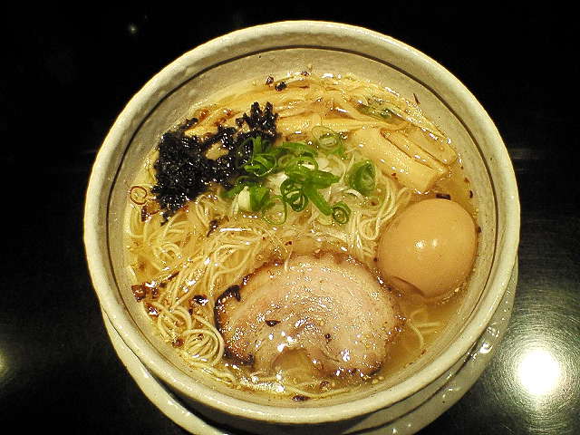 2002年4月22日オープン。一見ラーメン店とは思えない佇まいのこの店は、環七通りから一本路地を入った通りにあります。黒を基調とした店内には、マイルス・デイヴィスが壁に描かれ、BGMにジャズが流れるバーのような落ち着いた空間。創業当初は昼夜営業していましたが、夜の部をつけ麺専門店のFRIDAY、定休日の金曜をHOLIDAYとして営業する等、最近は多くの引き出しを見せていますね。化学調味料は使わず、ゲンコツや豚足などの豚スープ、名古屋コーチンのガラなどの鶏スープ、昆布や魚介の和風スープを別々に取り合わせるトリプルスープ方式です。